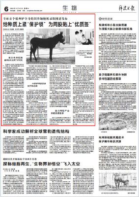 科技日报:全球首个德州驴全身组织单细胞转录组图谱发布 给种质上紧“保护锁” 为阿胶贴上“优质签”