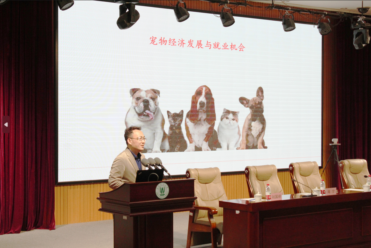 华子龙作了题为《宠物行业前景和就业机会》的报告。从国内外宠物行业发展情况出发,从宏观角度分析了宠物行业在未来的发展市场,并针对宠物医疗、宠物食品以及自身企业发展情况等进行了详细介绍。华子龙指出,宠物行业未来发展空间巨大,急需大量专业人才,并从用人单位的角度为大家提出职业规划选择和建议,与在座师生就相关问题进行了交流。