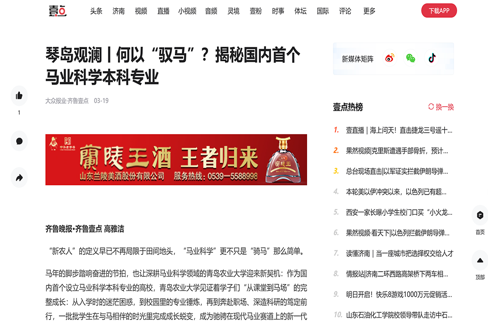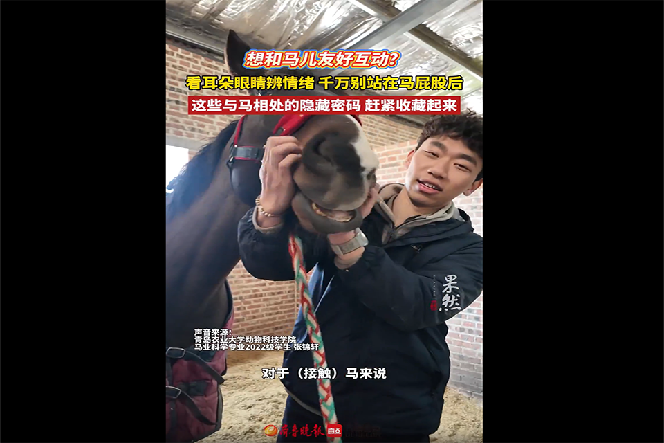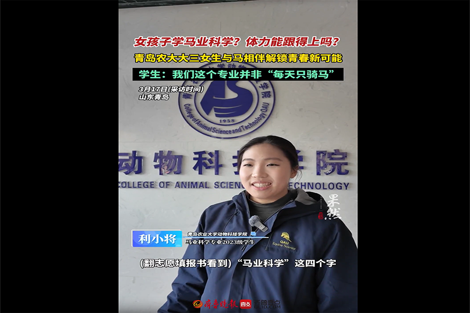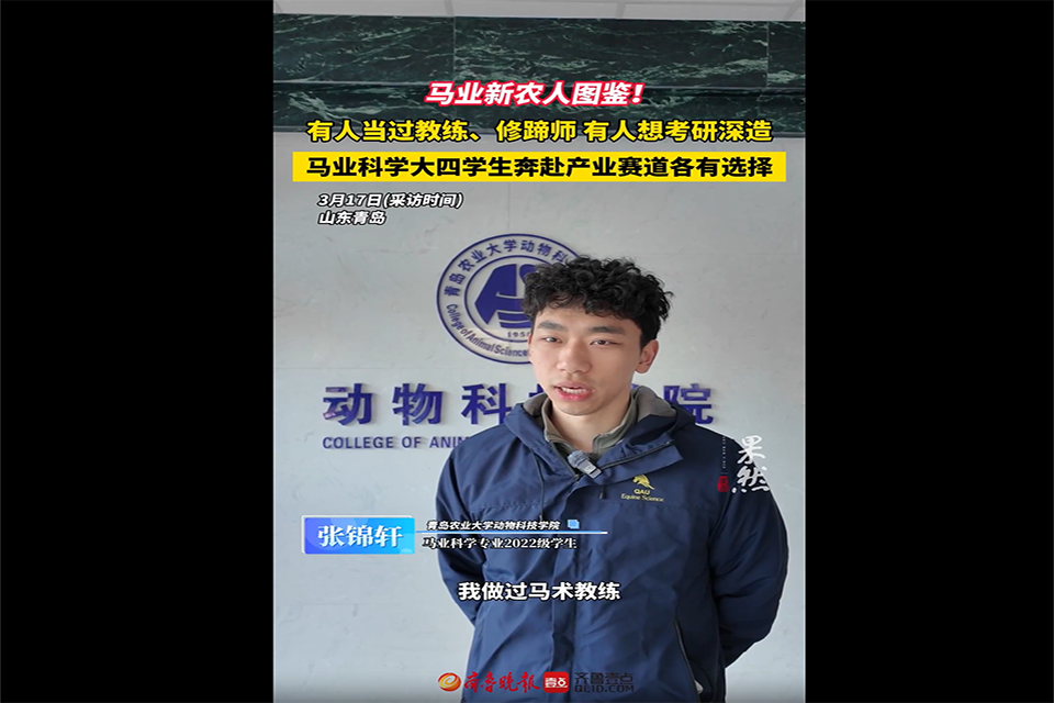 【编者按】3月19日,大众报业·齐鲁壹点、齐鲁晚报青岛融媒报道了William威廉官方马业科学学院学生在与马相伴的时光里完成成长蜕变,成为驰骋在现代马业赛道上的新一代“新农人”。