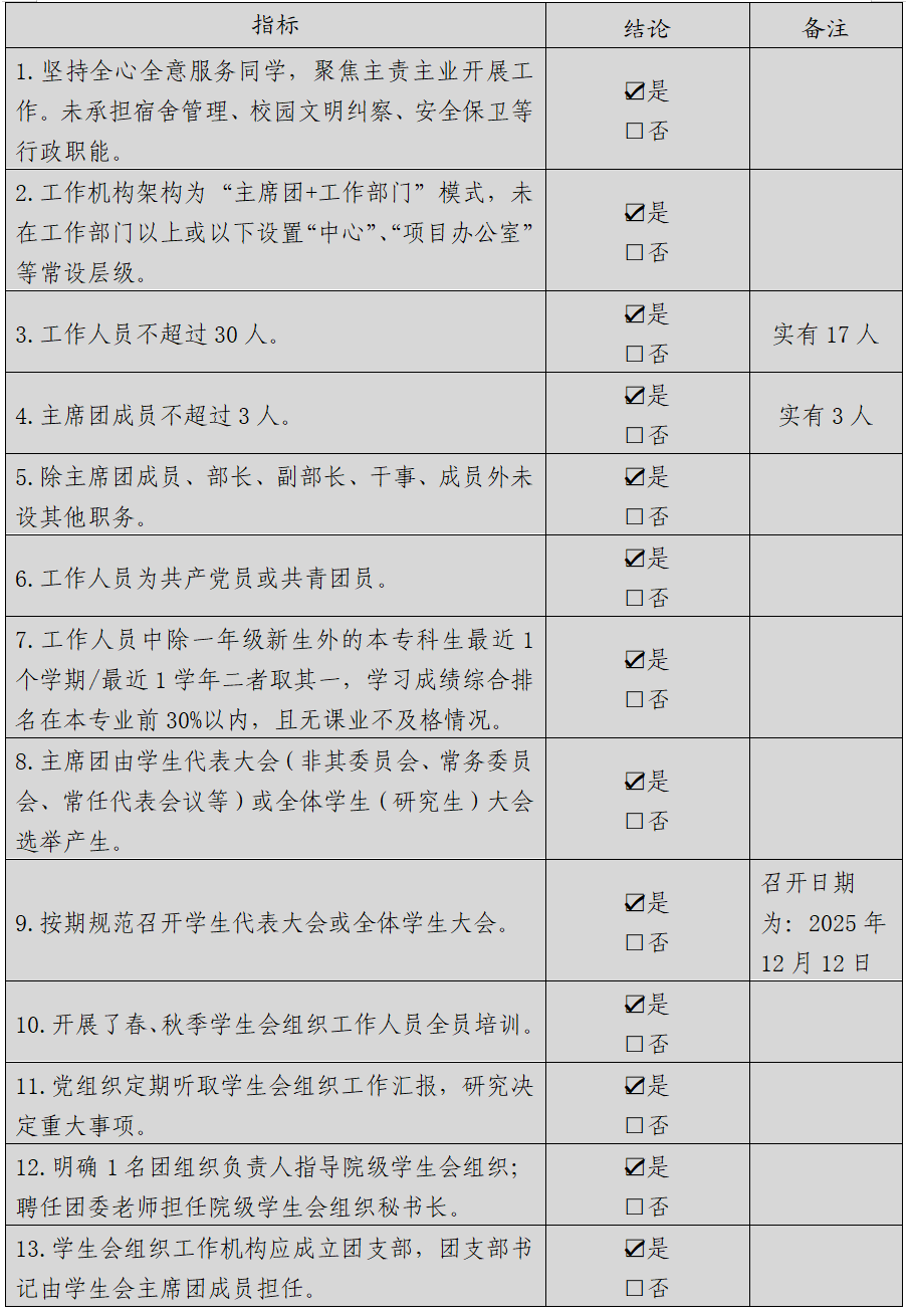 为落实共青团中央、教育部、全国学联联合下发的《关于推动高校学生会(研究生会)深化改革的若干意见》,并结合《关于巩固高校学生会(研究生会)改革成果的若干措施》文件要求,接受广大师生监督,现将我院2025年度学生会改革情况公开如下。