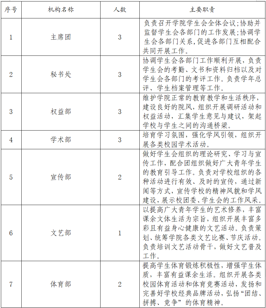 (一)主持学院学生会运行的日常工作,决定学院学生会结构调整、工作改革等重大事项;