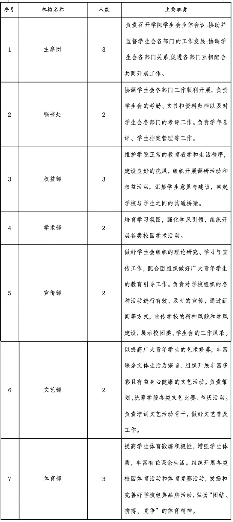 (1) 学院学生会主席团成员不超过3人。