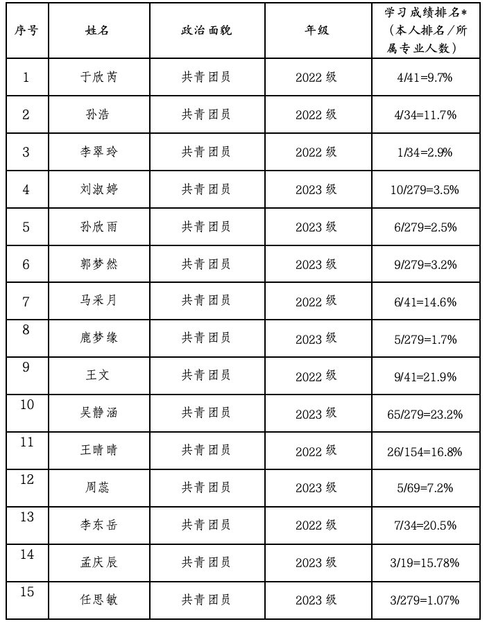 (一)带头勤奋学习,学好专业知识,学习成绩综合排名在本专业前30%以内,且无课业不及格情况。(15分)