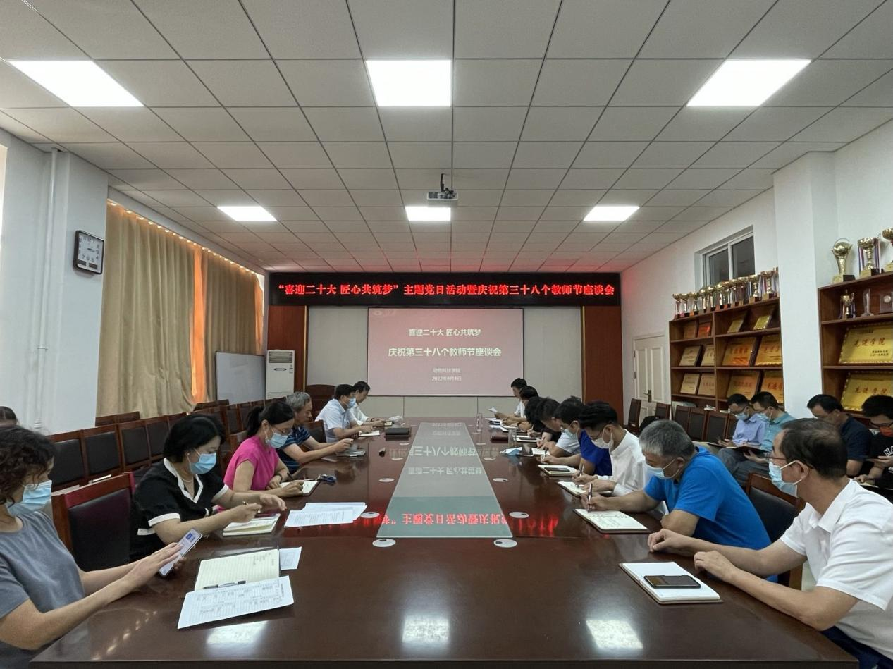 9月8日下午,williamhill威廉希尔党总支教师党支部举办“喜迎二十大 匠心共筑梦”主题党日活动,同时召开庆祝第三十八个教师节座谈会,学院党政负责人和全体教职工参加,会议由党总支书记展学斌主持。