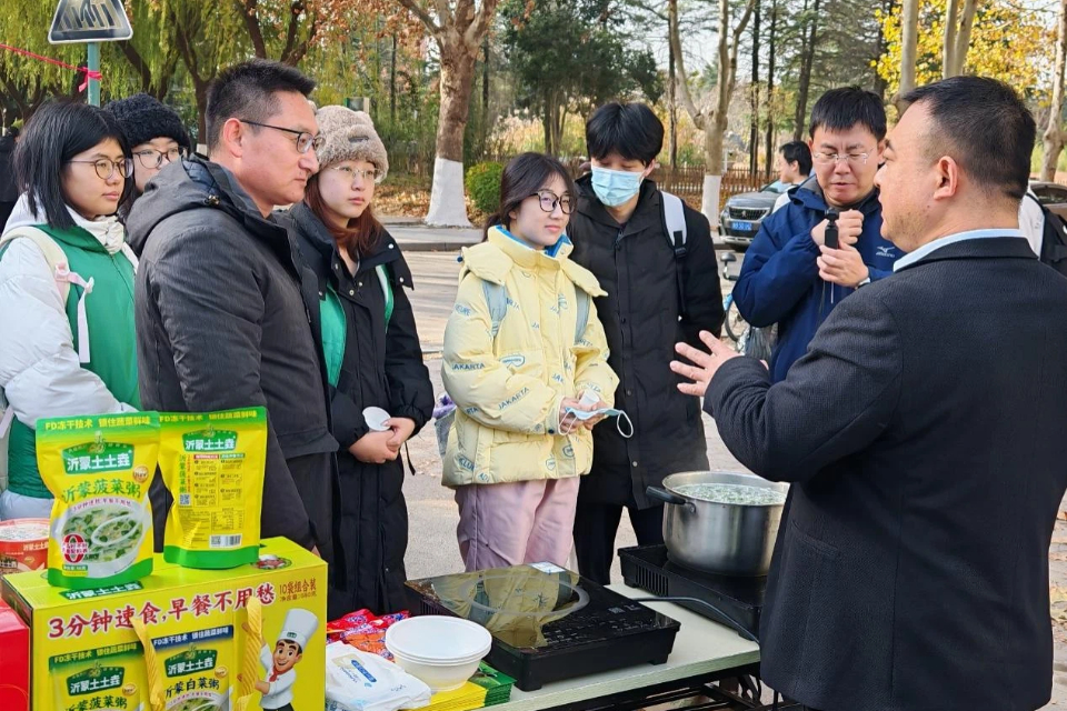 活动现场展销了鹿系列制品、山楂、金银花、煎饼、粘豆包、牛肉酱、糁、果酒等临沂当地具有代表性的农产品。同时,现场制作便捷热食或饮品供师生免费试吃。蒙阴县挂职副县长、williamhill威廉希尔教授赵海平现场推介展销产品。现场气氛热烈,前来咨询、试吃、购买的师生络绎不绝。不少师生表示,参展产品生态健康、品质优良,实现了从“田间地头”到“校园餐桌”的高效对接,为乡村振兴贡献了力量。