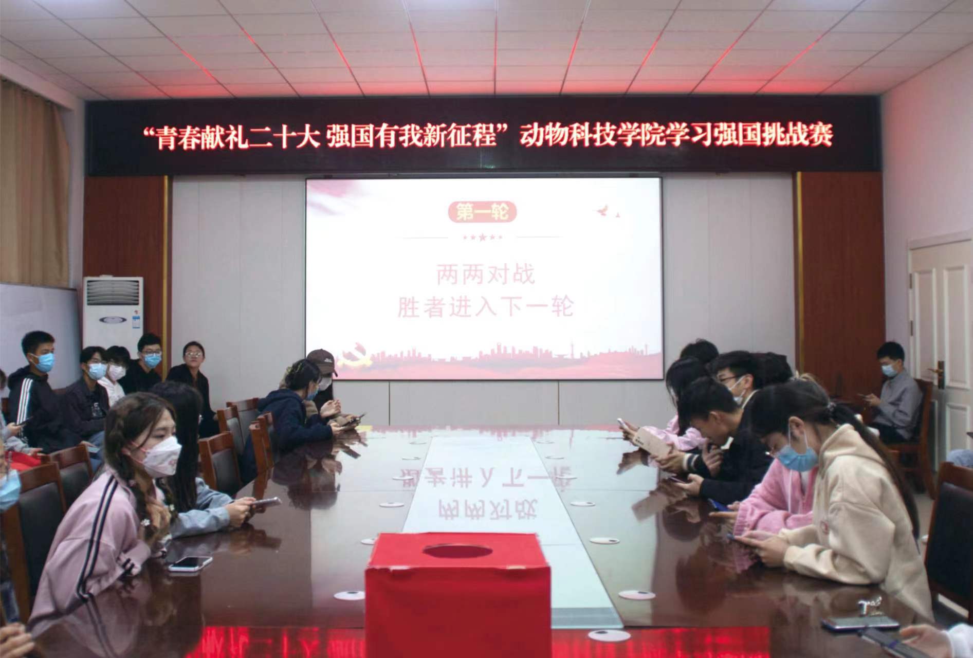 本次活动紧紧围绕习近平总书记在刚刚召开的二十大报告中对青年的勉励“青年强则国强”。通过武装思想,落实行动,勇做时代弄潮儿,以少年之志赴时代之约,以青春之名献礼二十大 。学习强国挑战赛全院共42名同学参加比赛,通过抽签的方式两两比拼,经过五轮激烈角逐,动科2004班樊雨滢获得一等奖,马科2001班刘桐溪等2位同学获得二等奖,动科2003班王雨阳等8位同学获得三等奖。