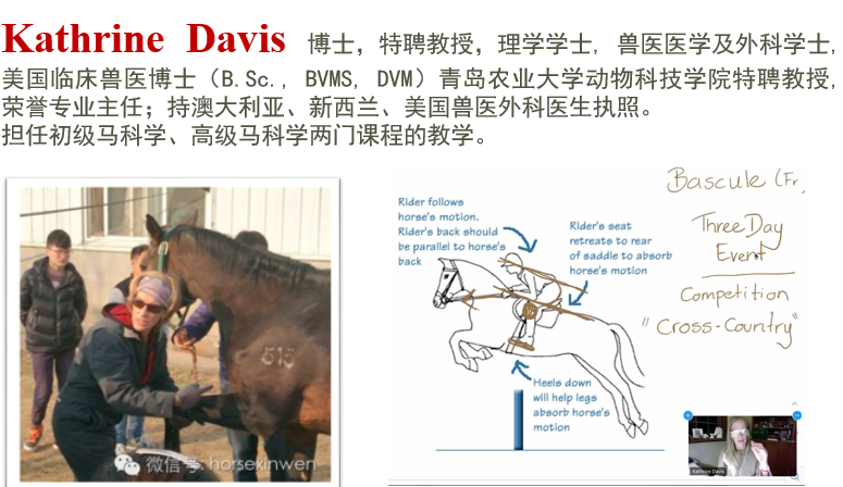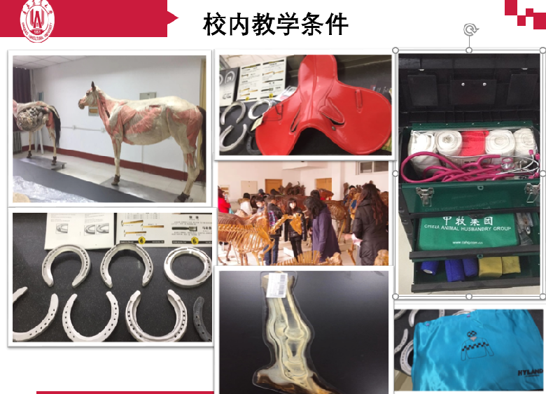 师资力量:马业科学专业的师资队伍建设一直坚持引进高水平国外专家参与教学,积极开展国际合作,在运动马的繁育、管理和马术运动方面特色突出。现有教师23人,其中教授10人,副教授7人,博士17人。特聘新西兰马业科学专家Kathrine博士每年为大二、大三的马业科学学生全英语授课。此外,多门课程实行双语教学。本专业不定期邀请国外马学专家进行专题讲座和讲学,与美国、英国、法国、澳洲等国外多所大学和马业机构建立了合作交流关系。