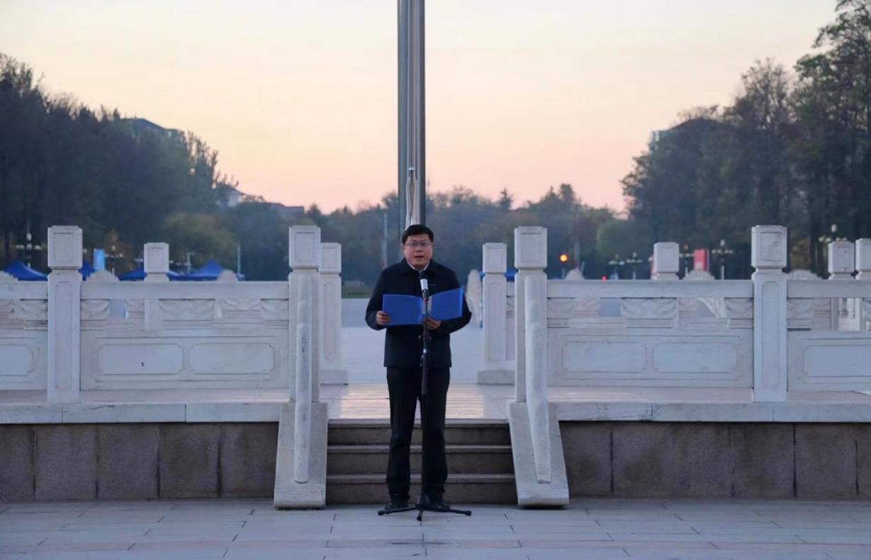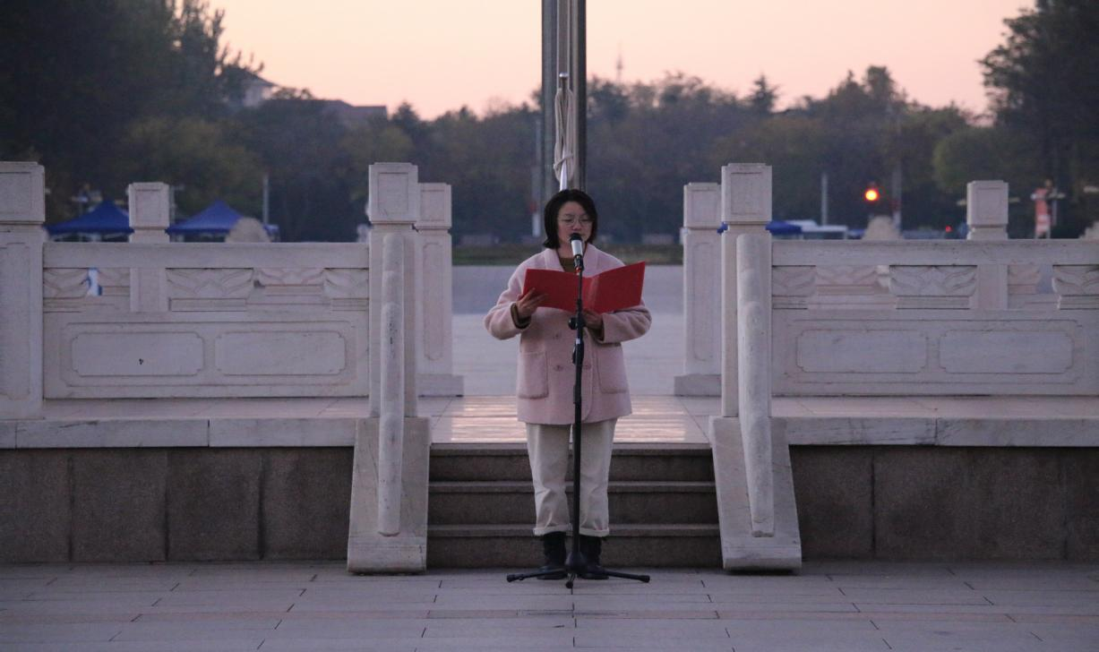 升旗仪式上,学生代表王璐珍发表演讲,表达了对国旗的崇高敬意,号召同学们勇于承担使命、乐于奋斗奉献、善于开拓创新,为成为中国特色社会主义事业的合格建设者和可靠接班人而努力奋斗。