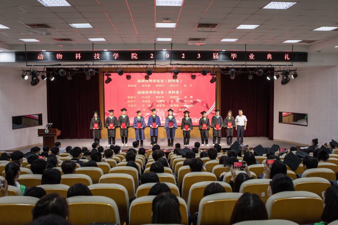 省级优秀硕士研究生郭贽豪、动科创新实验班刘浩域、公费农科生孙小同作为毕业生代表发言,对学院和母校表示感谢,并祝愿学校越来越好,祝愿老师桃李满园,祝愿同学们宏图大展。动科2001班赵传阳代表在校生对毕业生同学表达了最衷心的祝愿。