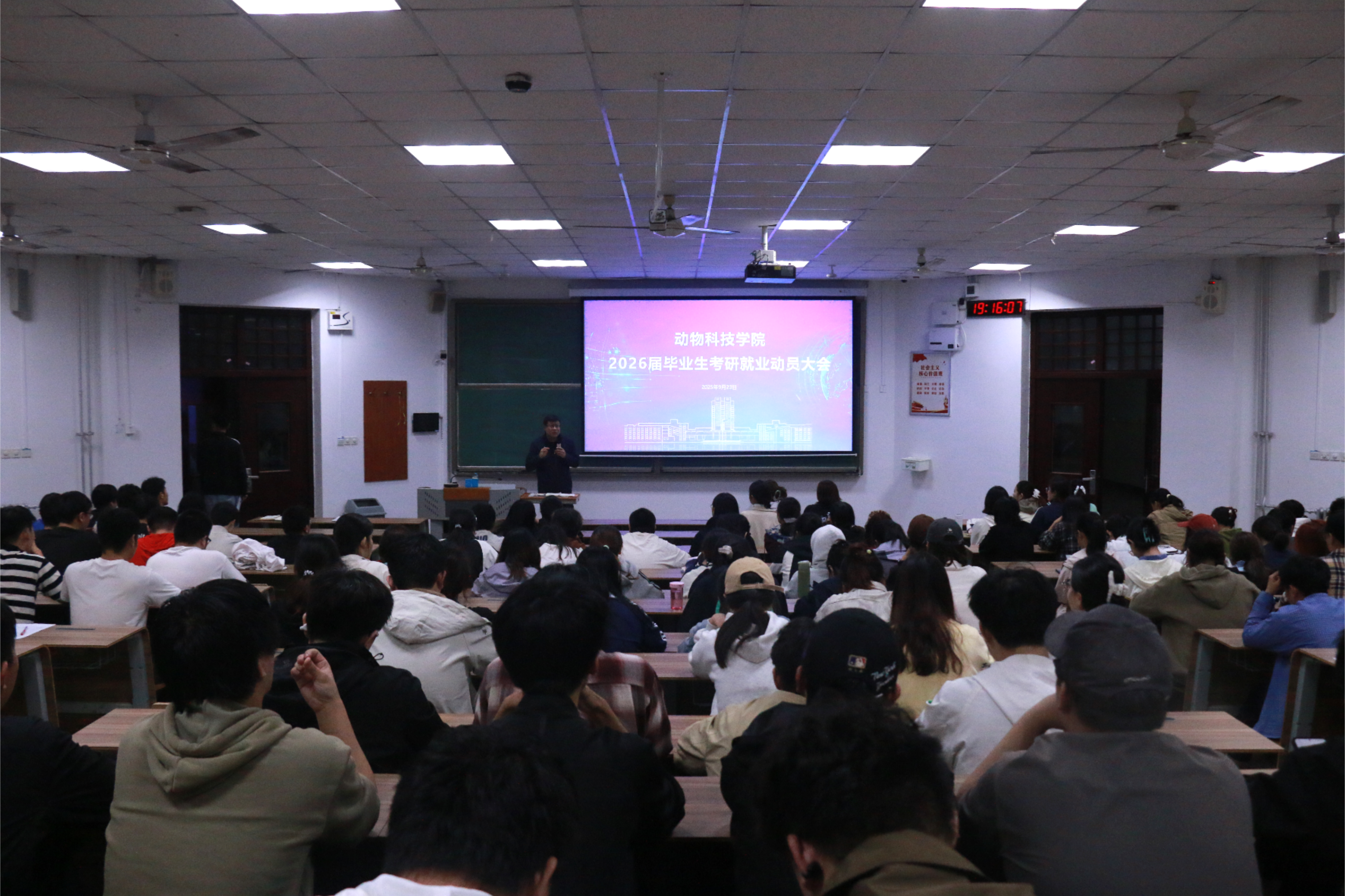会上,辛丽轲深入分析了当前高校应届毕业生面临的考研就业形势,结合畜牧领域的行业特点与发展趋势,激励同学们树立正确的就业观与价值观,将服务国家重大战略摆在重要位置,立报国强国大志向、做挺膺担当的奋斗者,实现个人价值和社会价值的双重提升。