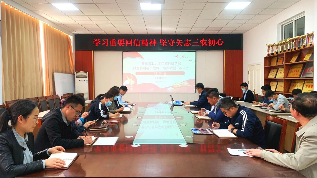 5月12日,学院召开研究生学习重要回信精神座谈会。山东诸城水貂科技小院、山东文登奶山羊科技小院、山东高密五龙鹅科技小院、山东胶州黑猪科技小院、山东蒙阴梅花鹿科技小院的研究生代表分享了对总书记重要回信精神的学习体会,表示要牢记习近平总书记殷殷嘱托,志存高远、脚踏实地,不负时代、不负青春,带头投身到乡村振兴和农业农村现代化的火热实践中。